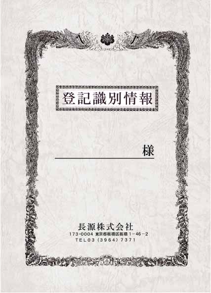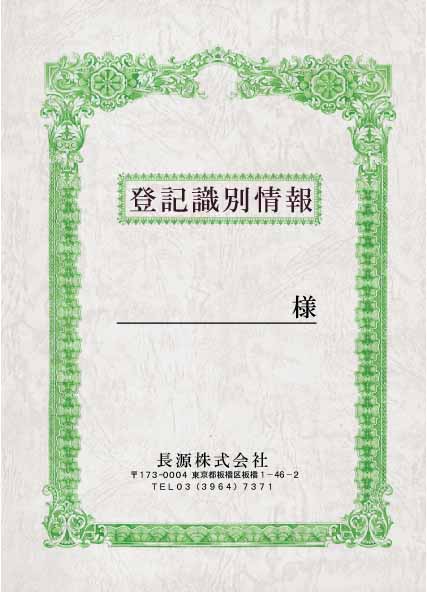 | タイトルは『不動産登記権利情報』『登記識別情報』の他にございますので お問合せ下さい。箔入りもございます。 | |||